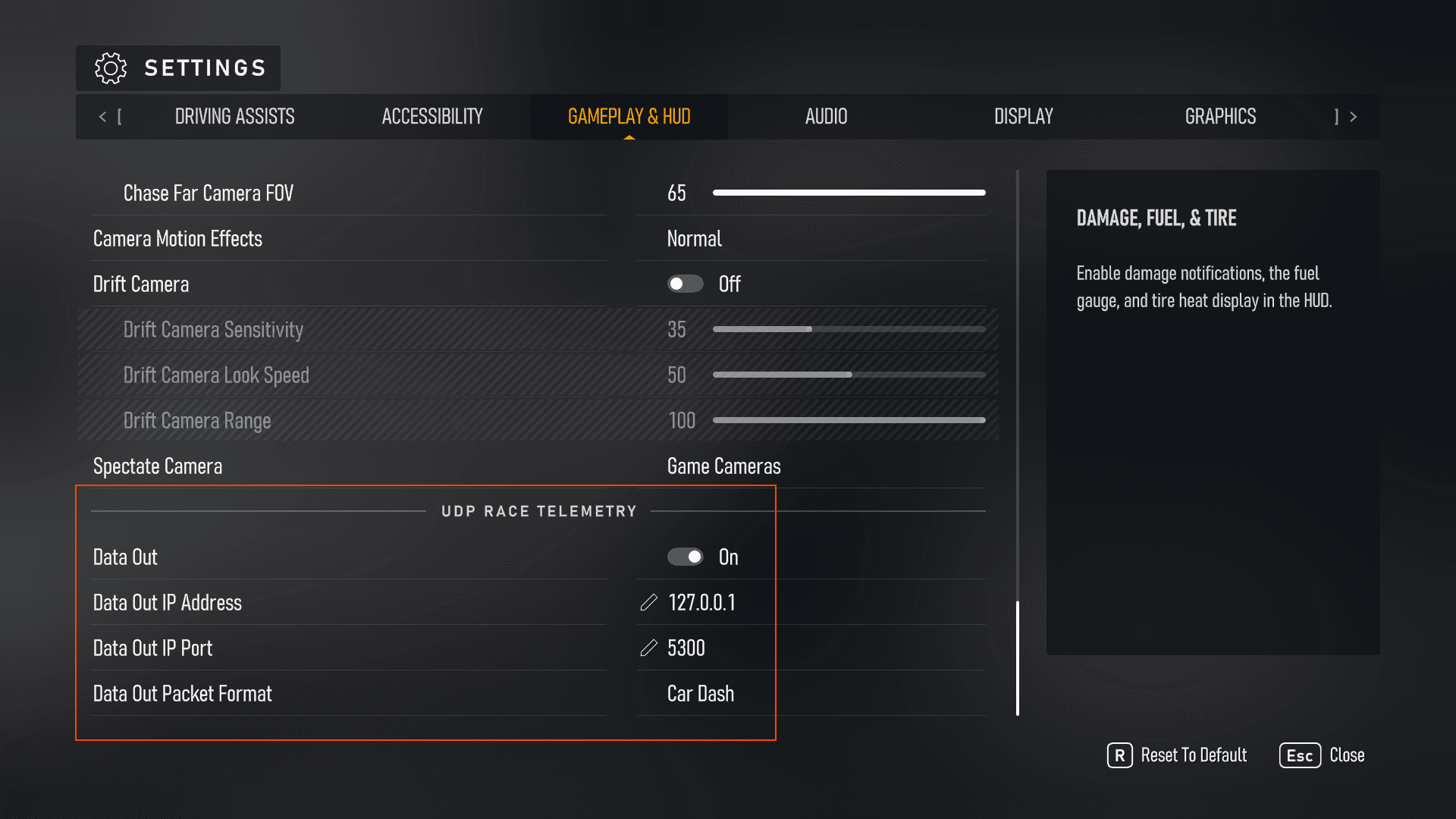 Enable Data Out in Forza Motorsport