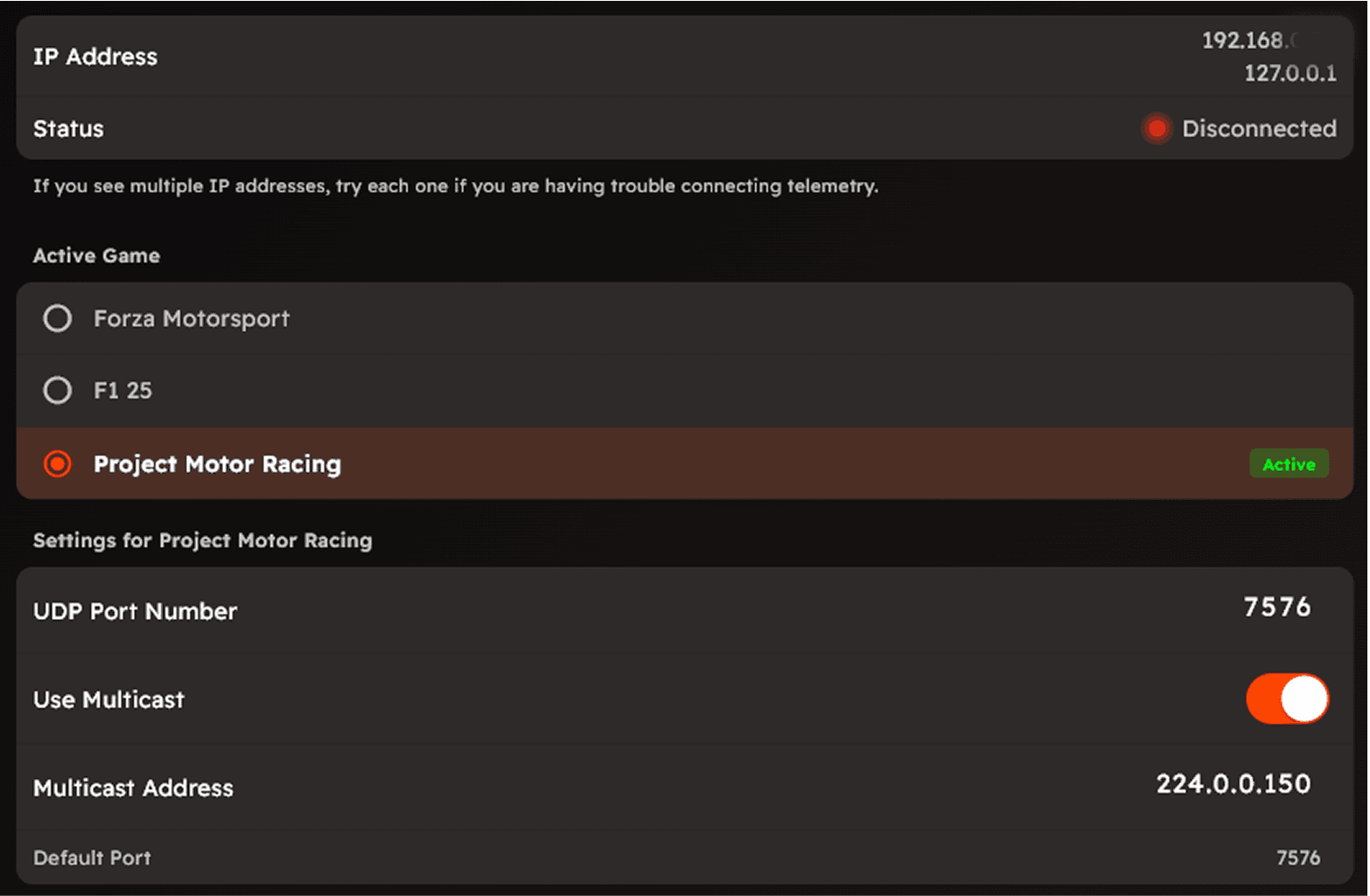 Verify that your mobile device (running Racing View) and your PC (running Project Motor Racing) are connected to the same local network. This is crucial for seamless data transmission.